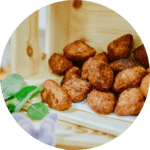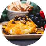 Roquefort cheese cream in a filo pastry, topped with almond nut.