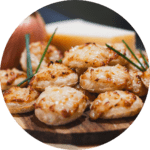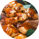 Vegan ham and dijon mustard rolled in a puff pastry.