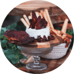 Selection of sun-dried tomatoes, black olives and goat cheese homemade pâté’s.